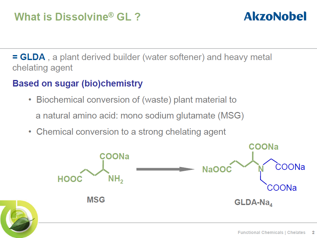 | L-glutamic acid, N,N-diacetic acid, tetrasodium salt | 51981-21-6 | 5~15% |