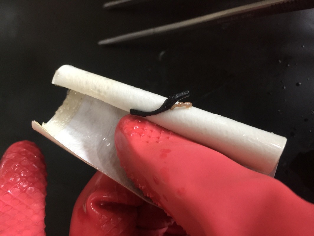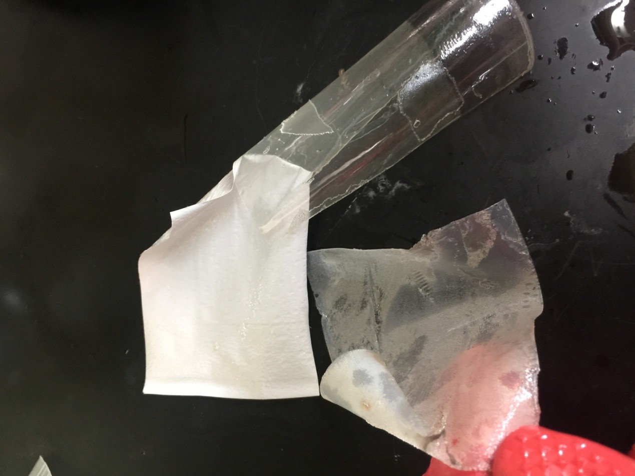 10. The solar backsheet can now be easily separated into three layers.